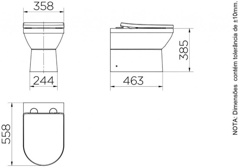 bacia convencional, tubo de ligação, assento sanitário, anel de vedação, kit fixação em l