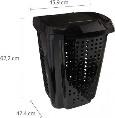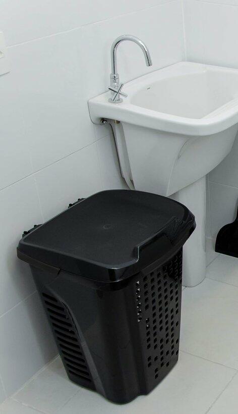 Roupeiro telado com tampa para armazenar e organizar as roupas sujas. Conta com um compartimento exclusivo para separar as peças pequenas e/ou delicadas. Seu design permite ventilação interna. O modelo conta com versão sem cesto (RB8).