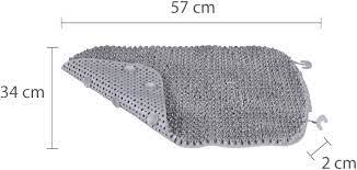 Possui cerdas que massageiam a sola do pé durante a utilização e ventosas na parte inferior que dão segurança durante o uso.