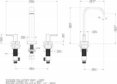 | Conteúdo da embalagem | 2 bases, 2 volantes, 2 guias de volante, 1 bica, 2 parafusos allen, 3 porcas de fixação, 2 flexíveis, 2 aneis plásticos, 2 anéis o?ring, 1 válvula saída d'água, 1 chave allen, 1 chave do arejador, 3 anéis retangulares, 2 buchas trava, 2 calços, 1 anel de borracha e 1 gabarito |