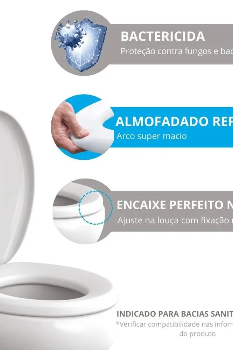 Os Assentos Almofadados Slim oferecem maciez, contam com arco liso e sobretampa brilhante de cobertura total, além disso, os modelos possuem proteção bactericida.