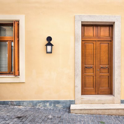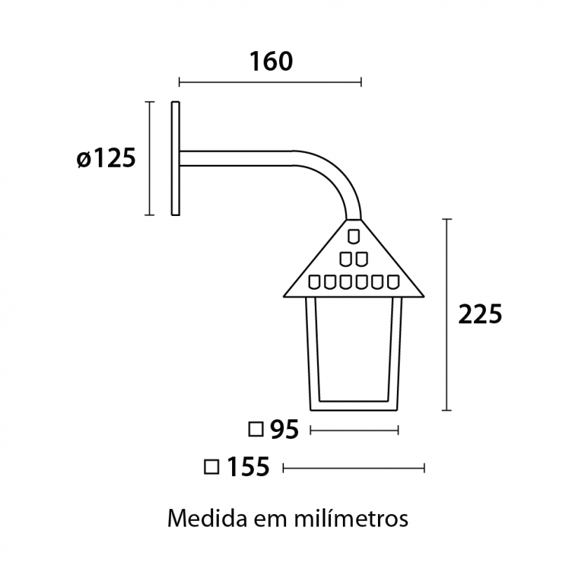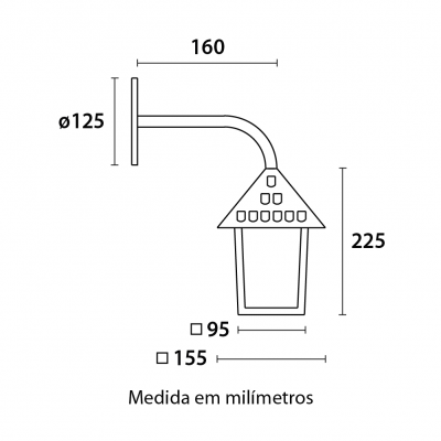 Feito no Brasil desde 1978, conta com corpo em aço, pintura a pó, lente de vidro pontilhado, soquete E27 que atende as variações de tensão entre 127V e 220V. Seu design clássico pode ser notado nos detalhes do telhado e estima acabamento que lembra telhas. Possui 1 ano de garantia.