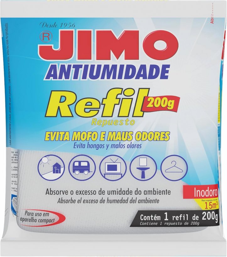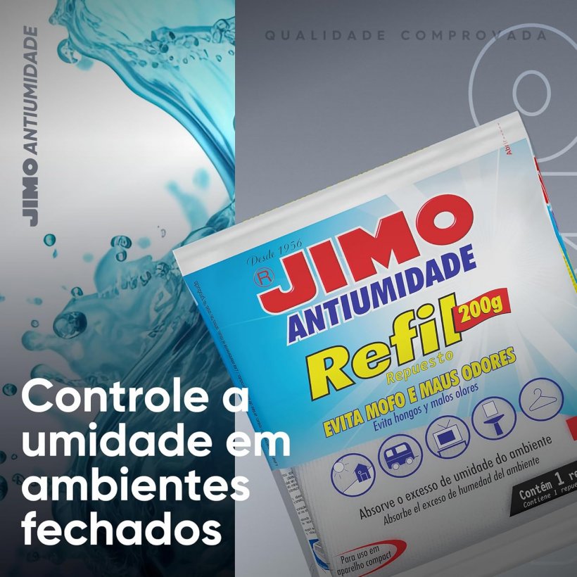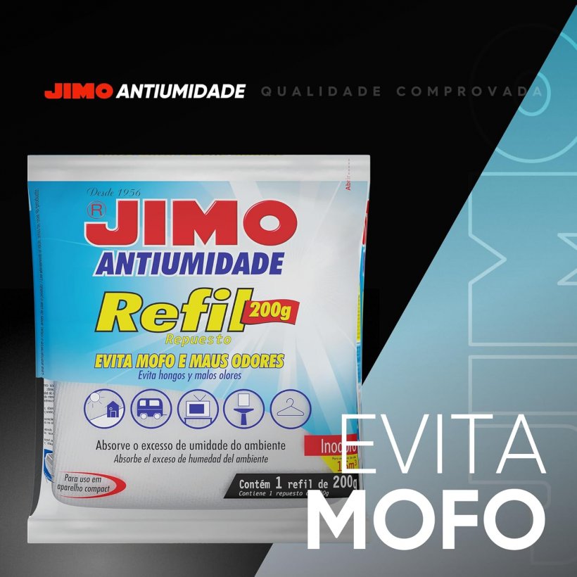 JIMO Antiumidade absorve o excesso de umidade do ambiente, até o percentual ideal recomendado, entre 50 e 60%.