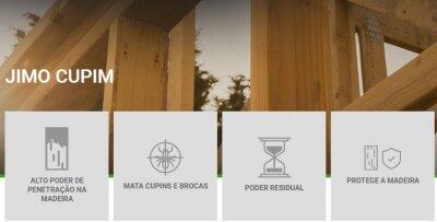 JIMO Cupim é um inseticida pronto para uso eficaz contra cupins e brocas, desenvolvido para o tratamento preventivo e curativo da madeira seca em ambientes internos ou externos. Penetra profundamente nos veios da madeira, possui alto poder residual e de fixação do princípio ativo. É recomendado para vários tipos de madeira, podendo ser aplicado em assoalhos, forros, portas, janelas, móveis e madeiramentos de telhados.
