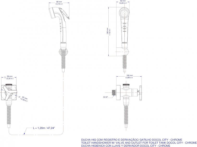 A linha Docol City é composta por um volante em formato de cruzeta com três pontas, que garante um fácil acionamento da água. A ducha higienica apresenta um cabo flexível e de extensão perfeita para o uso do produto, e proporciona conforto e liberdade de instalação, atendendo ambientes pequenos, que não abrem mão da higienização mesmo com pouco espaço. Este produto proporciona harmonia nos projetos, visto que combina com os metais escolhidos para compor seu banheiro.