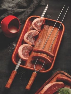 Este espeto foi desenvolvido para suportar o calor intenso e o uso contínuo sem perder a qualidade. Sua lâmina dupla em aço inox impede que a carne gire durante o manuseio, garantindo um assado uniforme em todos os lados. O cabo de madeira é resistente ao calor, proporcionando conforto e segurança para o mestre churrasqueiro.