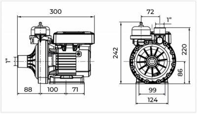 • Bomba em plástico de engenharia, ideal para regiões em que a água ataca o Aço Inox
