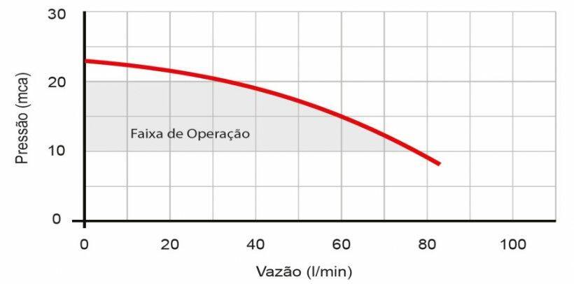 • Pressão de operação: de 10 a 20 mca