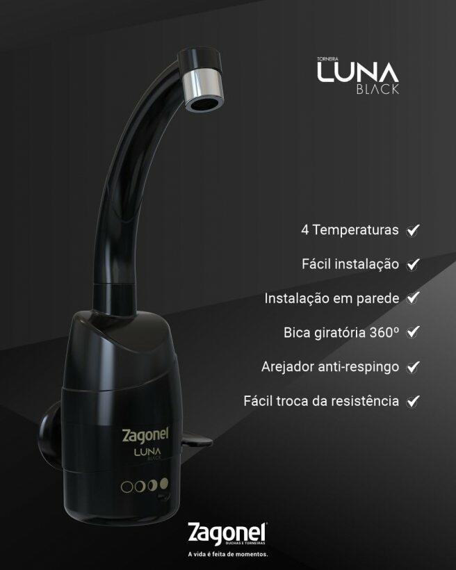 A torneira elétrica Zagonel Luna traz o equilíbrio perfeito entre design e performance. Com potência de 5500 W e voltagem 220 V, oferece quatro níveis de temperatura para um controle personalizado do fluxo de água – do banho morno ao quente.
