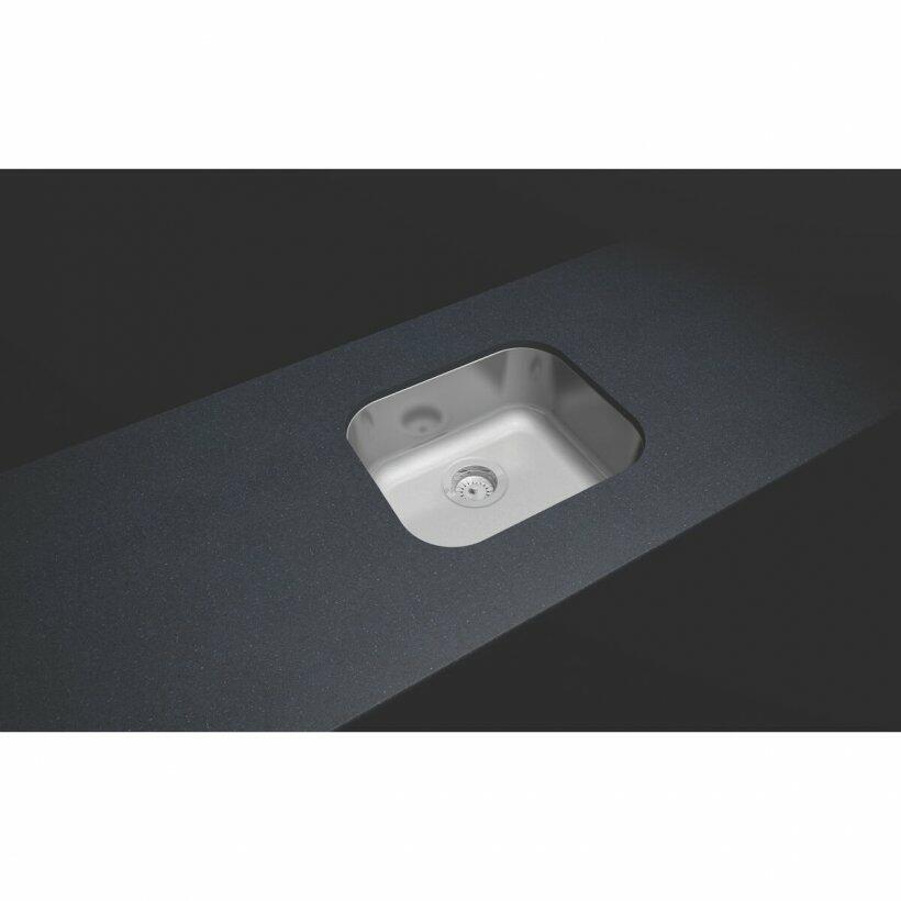 Produto: Cuba com borda lisa para instalação por baixo da bancada e 17 cm de profundidade. Opcionalmente são oferecidos acessórios como, tábua em madeira, grade aramada, bandeja perfurada e cesta quadrada.
