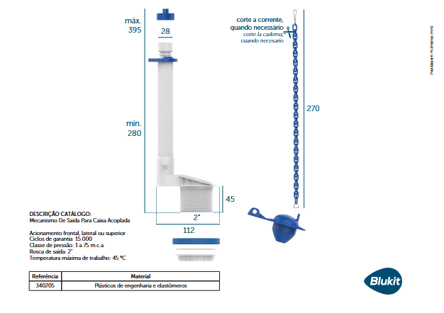• MECANISMO SAÍDA UNIVERSAL PARA CAIXA ACOPLADA 340205 BLUKIT