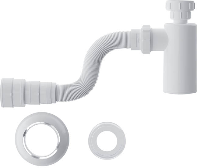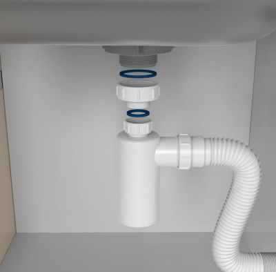 Dentre as diversas opções de sifões, a Blukit dispõe de um modelo muito versátil. A grande vantagem desse sistema é que o copo é rosqueável e facilmente removível, o que facilita muito a limpeza e a retirada dos detritos em caso de entupimento. Dessa forma, não é preciso desinstalar todo o sifão cada vez que a limpeza e a manutenção do sistema forem necessárias.