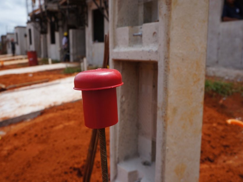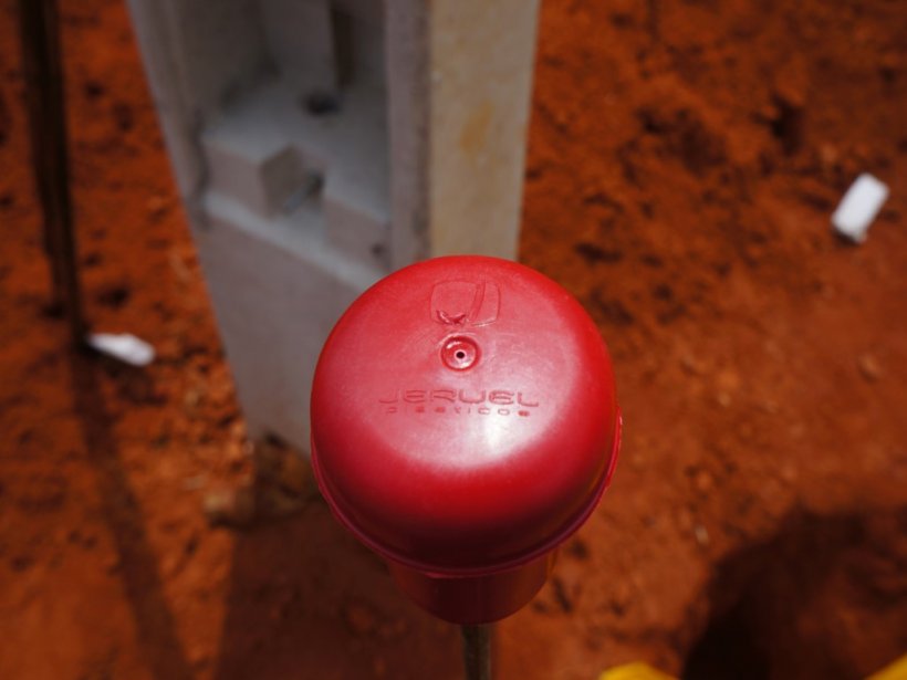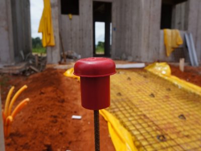 Tenha segurança no trabalho utilizando o protetor de vergalhão Jeruel. O único que aloja ferro até 1" sem precisar de adaptador.