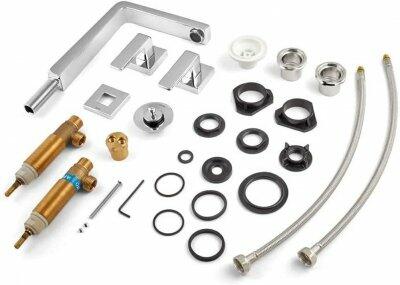 | Conteúdo da embalagem | 2 bases, 2 volantes, 2 guias de volante, 1 bica, 1 gabarito, 2 parafusos allen, 3 porcas de fixação, 2 flexíveis,2 anéis plásticos, 2 anéis oring, 1 válvula saída dágua, 1 chave allen,1 chave do arejador, 3 anéis retangulares, 2 tampas bucha, 2 buchas trava, 2 calços, 1 anel de borracha e 1 manual de instalação |