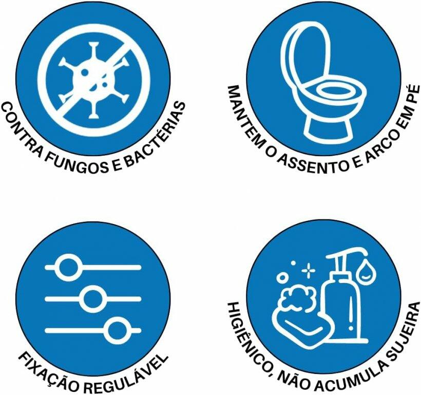• Fixação regulável: Assento se encaixa perfeitamente na louça.