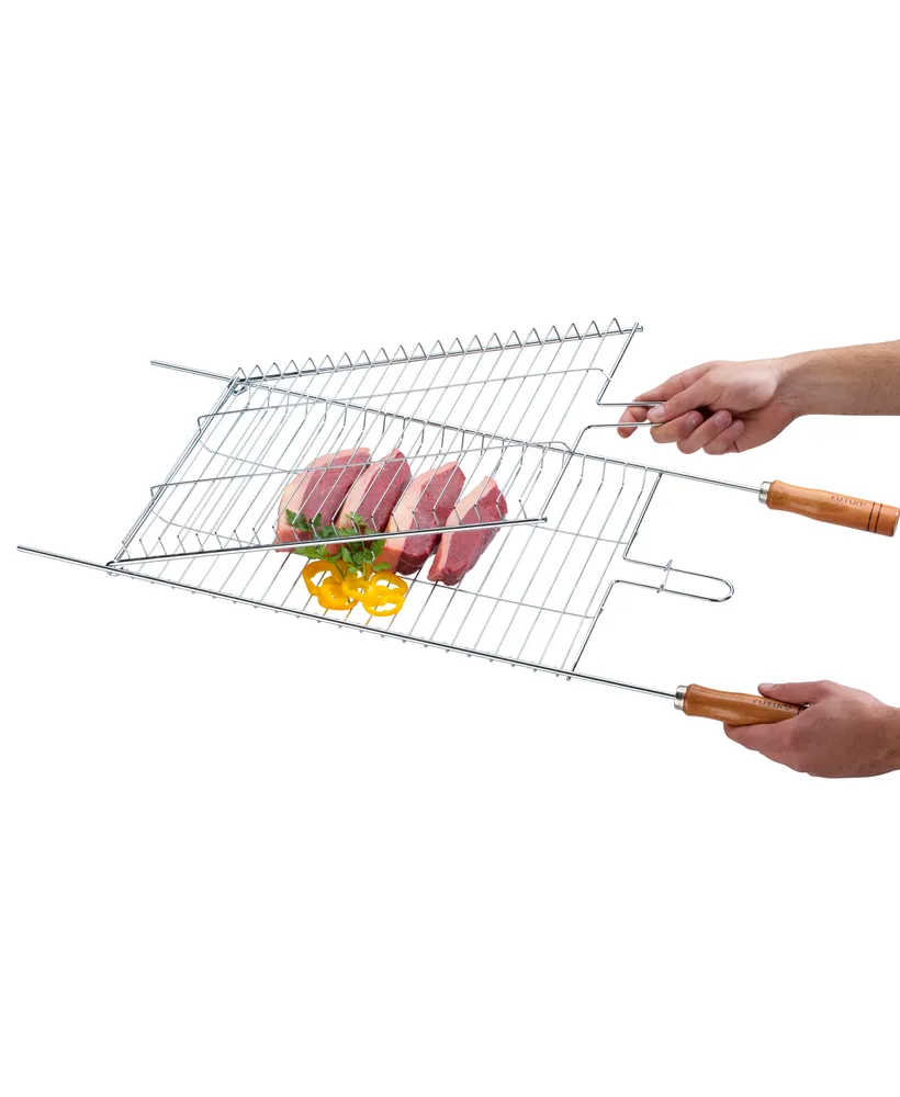 Grelha Para Assado. Material: Aço Carbono. A Grelha Para Assado Possui Tampa Para Facilitar O Preparo Das Carnes. Você Pode Virar A Grelha Para Assar Os Alimentos Dois Lados, Sem Que Eles Caiam Na Churrasqueira. Tem Trava Para Manter A Grelha Fechada. Fabricada Em Aço Carbono Cromado Com Cabos De Madeira. É Recomendada A Limpeza Logo Após O Uso. Aplicação: ACESSÓRIO PARA CHURRASCO. Acabamento: CROMADO. Produto MONTADO