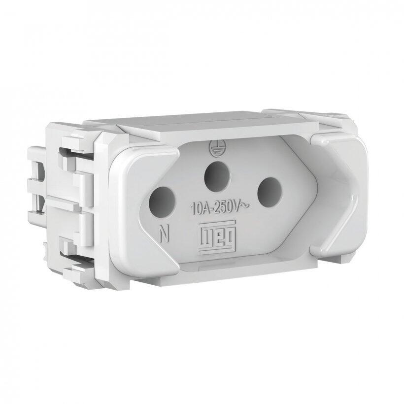 Módulo Tomada Padrão Brasil 10A Branco Composé WEG Código: 13203026 Código de barras: 7897957531328 Com design contemporâneo e linhas que combinam com o seu estilo, a Composé é a nova linha de Tomadas & Interruptores da WEG. São 10 opções de cores para deixar a sua casa do seu jeito, sem deixar de lado a funcionalidade e a qualidade já reconhecidas da marca WEG. Resumo das características técnicas Tipo 2P+T Cor Branco Cor do fundo Sem Corrente nominal 10 A Tensão nominal 250 Vca
