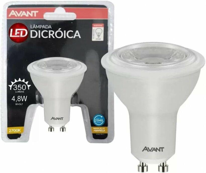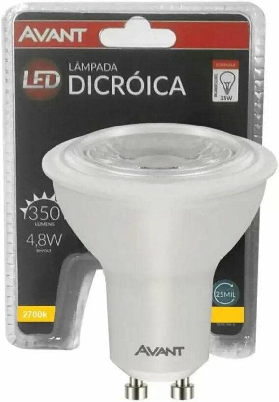 LAMPADA LED DICROICA 4,8W BRANCO QUENTE 2700K BIVOLT GU10 - AVANT