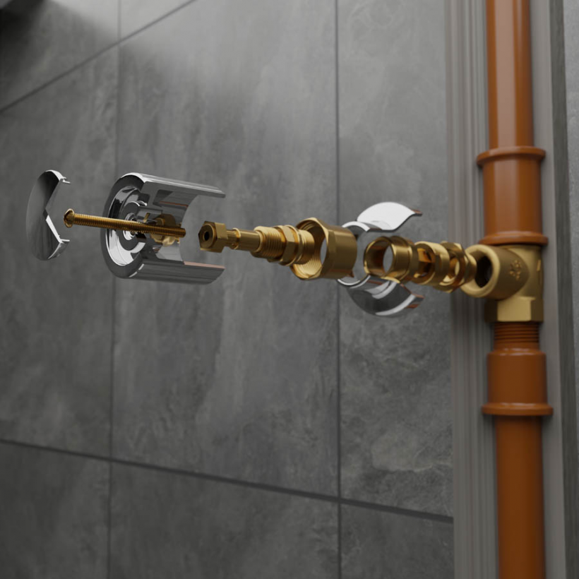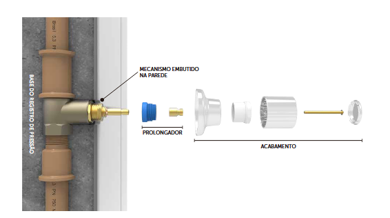 Os prolongadores Blukit auxiliam no conserto de instalações nas quais os registros estão embutidos (enterrados) na parede. Sendo versátil, permite que você instale o acabamento de um fabricante sobre a base do registro de outro.