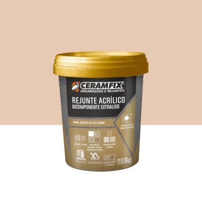 O Rejunte Acrílico Bicomponente Extraliso Ceramfix é uma argamassa de rejuntamento especial que possui em sua composição resinas acrílicas, aglomerantes e cargas minerais. É próprio para aplicação em juntas de 0,5 a 5 mm, é de fácil aplicação e acabamento extraliso. O produto é indicado para porcelanatos, mármores, granitos e cerâmicas retificadas. Devido a sua alta aditivação possui excelente aderência, resistência mecânica, flexibilidade, baixa absorção e proteção contra fungos e bactérias. Não contém areia em sua composição e por isso oferece um acabamento extraliso, cores uniformes e permanentes.