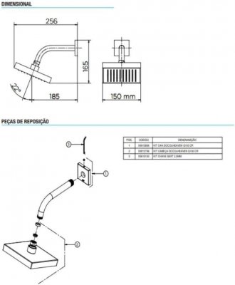 | Componentes incluídos | 1 cabeça de chuveiro, 1 braço de chuveiro, 1 canopla, 1 parafuso, 1 restritor, 1 chave sextavada. |