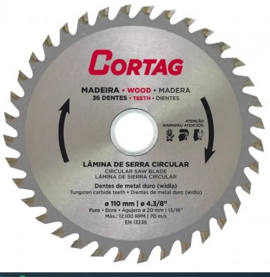 Lâmina De Serra Circular Para Madeira 36 Dentes 110Mm Cinza Cortag Utilizado Para Corte De Madeira, Mdf, Aglomerados, Compensados E Derivados. Não Utilizar Para Corte De Metais, Bem Como Madeira Impregnada Com Cimento Ou Massa. Utilizado Para Corte De Madeira, Mdf, Aglomerados, Compensados E Derivados. Não Utilizar Para Corte De Metais, Bem Como Madeira Impregnada Com Cimento Ou Massa. Chapa De Aço Ferramenta Com Pontas De Carboneto De Tungstênio.