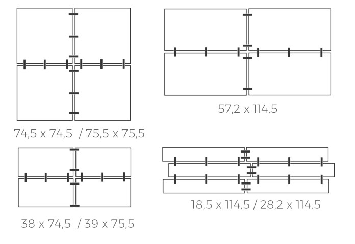 Os grandes formatos via seca são 74,5 x 74,5 - 75,5 x 75,5 - 38 x 74,5 - 39 x 75,5 – 57,2 x 114,5 e 18,5 x 114,5.