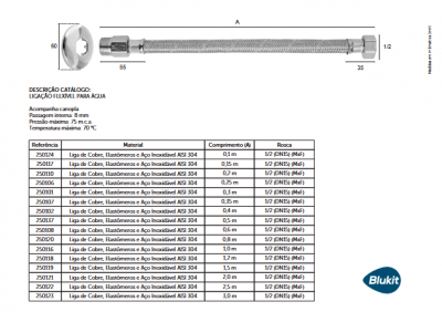 As Ligações Flexíveis Blukit são versáteis em comprimentos, bitolas e configurações. Seu visual permite a instalação em ambientes requintados, além de impossibilitar o desenvolvimento de atividade biológica. Atendem as normas da Associação Brasileira de Normas Técnicas (ABNT), são de fácil manuseio, melhor custo benefício, práticos e seguros. São resistentes as variações de temperatura, preparados para as mais diversas condições e situações de instalação.