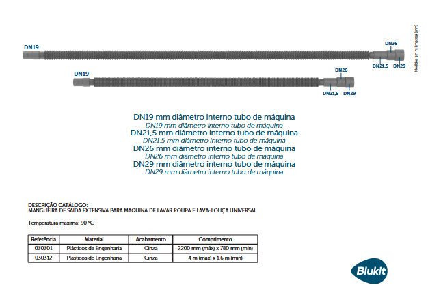 Plásticos de Engenharia DN19 x DN21,5 x DN26 x DN29. Mangueira de Saída Extensiva para Máquina de Lavar Roupa e Louça.