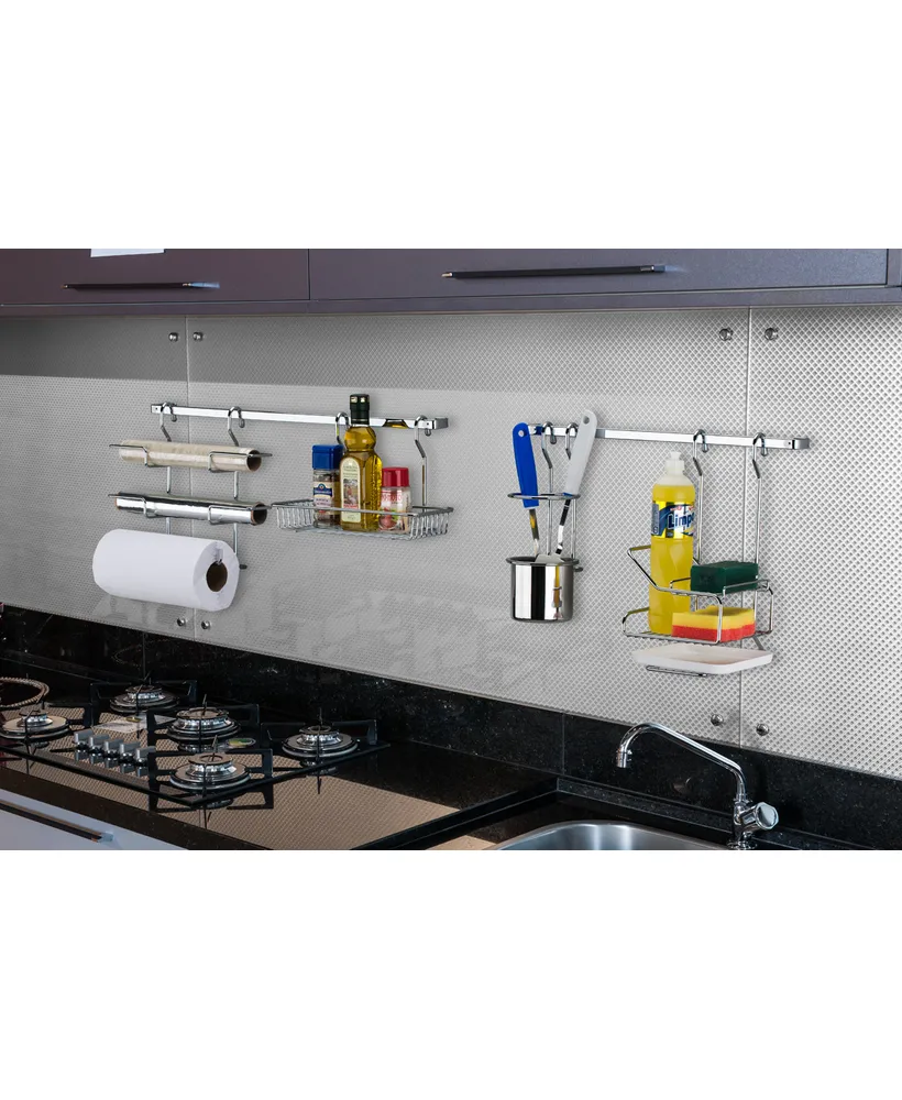 Acompanha 6 ganchos para pendurar garfos, conchas e colheres que possuem furação no cabo, além do tradicional tratamento superficial da future.