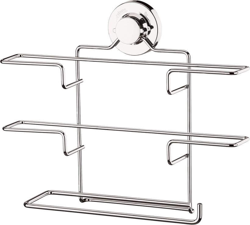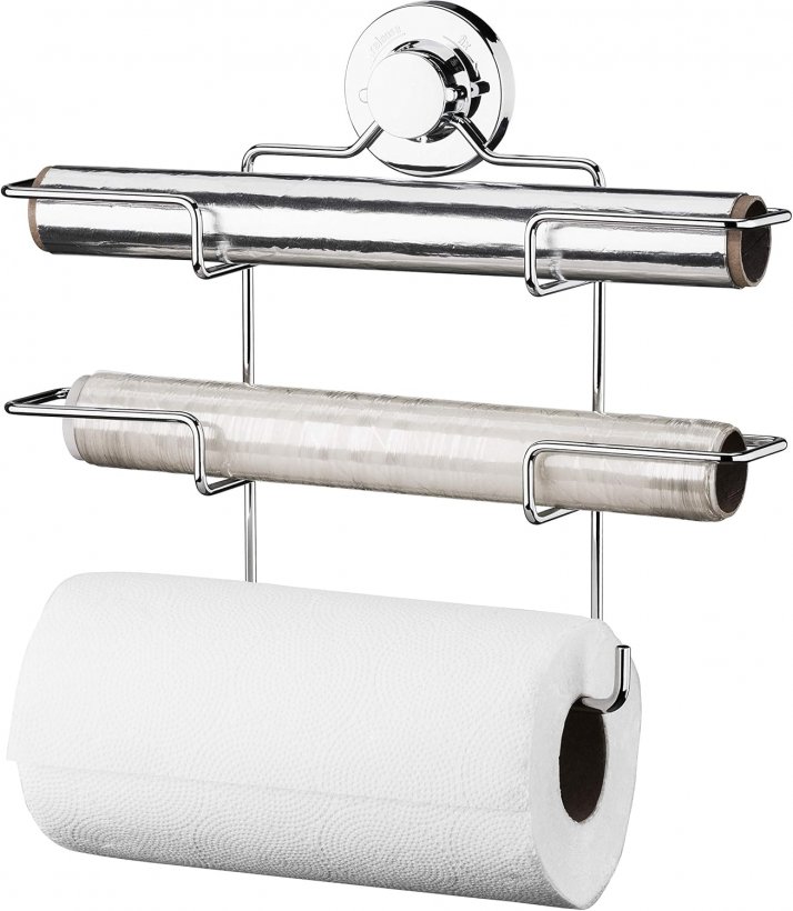 Suporte para papel toalha/alumínio/pvc. Material: - aço carbono. Um único suporte acomoda diversos itens necessários na cozinha. os rolos de papel toalha, alumínio e pvc ficam perfeitamente organizados e de fácil acesso. as ventosas da linha praticità da future são extrafortes, garantindo que o produto fique firme e seguro. Pensando em praticidade, é de fácil instalação, sem furos e sem sujeita. Utiliza um sistema de fixação a vácuo que permite instalar o produto em superfícies lisas e brilhantes ou trocar de lugar a qualquer momento. Além do tradicional tratamento superficial da future - onde são aplicadas até 4 camadas de metal - os produtos são revestidos com uma camada extra do protetivo especial rust free, garantindo cores vivas e brilhantes, além de maior resistência contra ferrugem. Correto: superfícies lisas, brilhantes e totalmente planas como vidros, espelhos, azulejos, cerâmicas não porosas, pinturas lisas e brilhantes (epóxi) e laminados. Incorreto: superfícies curvas e porosas, como papel de parede, couro, cimento, madeira, etc. aplicação: acessório para cozinha. acabamento: cromado.