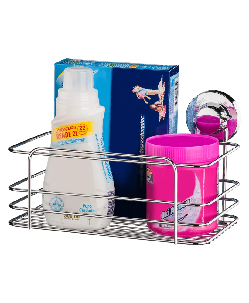 Cesto multiuso. material: - aço carbono. o cesto multiuso é um verdadeiro coringa! permite que você decore o ambiente e deixe tudo em seu devido lugar, sendo na cozinha, no banheiro ou na lavanderia prático, de fácil instalação e perfeito para deixar o espaço organizado sua fixação por ventosas permite que seja mudado de lugar a qualquer hora e livre de furos e sujeira.