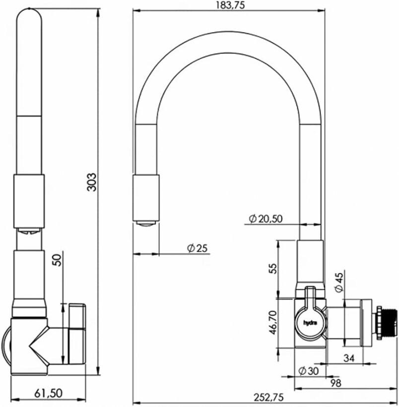 • HYDRAMOTION TORNEIRA COZINHA PAREDE PRETA PTPT