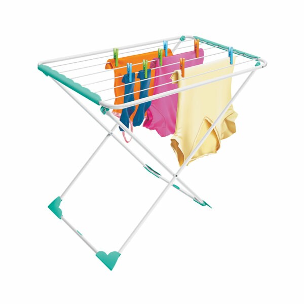 Varal de alumínio com peças de proteção em plástico para evitar arranhões e para um acabamento estético mais sofisticado ao produto. Fechado ocupa pouco espaço. Ideal para viagens, apartamentos e pequenas lavanderias. Não enferruja, altamente resistente