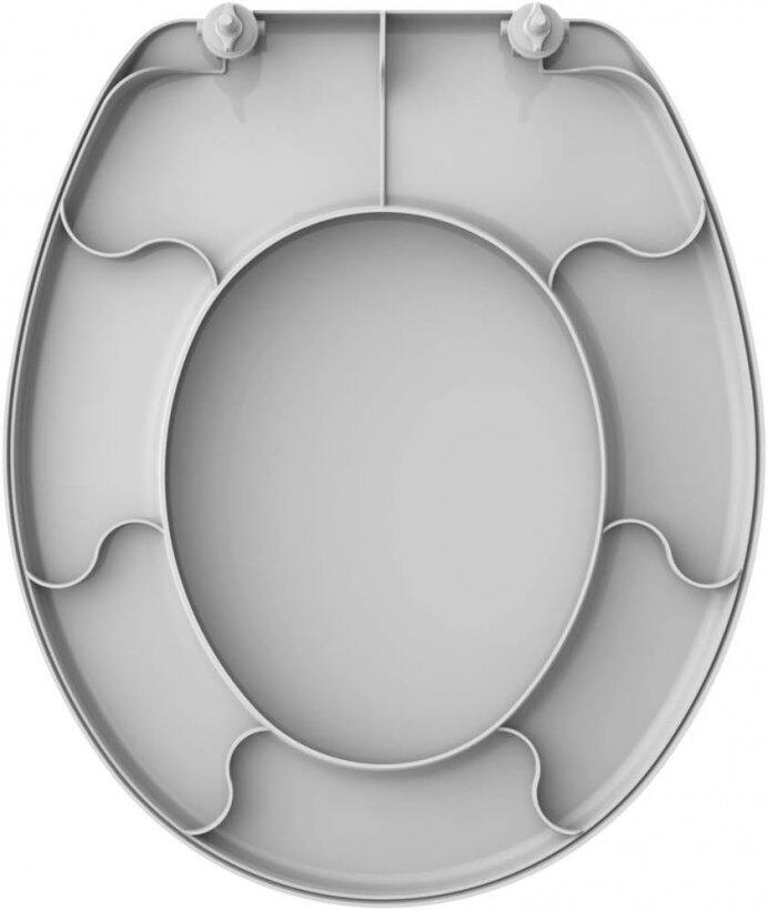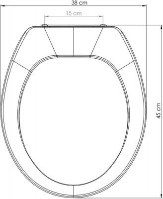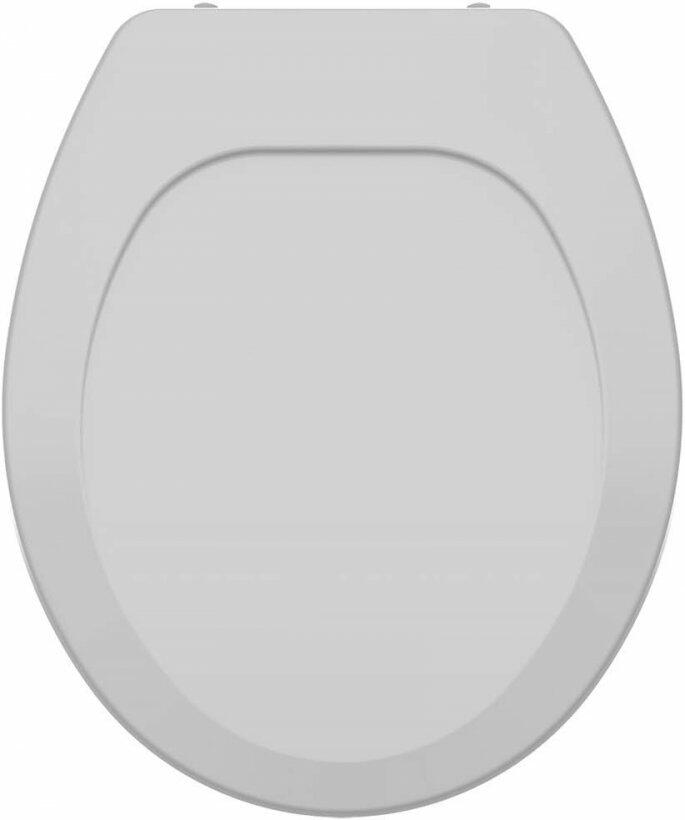 Assento universal para todas as bacias ovais, em polipropileno, higiênico e de fácil limpeza, confortável, resistente, com tampa envolvente e superfície brilhante.