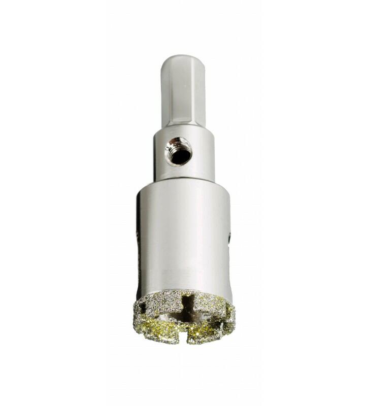 Serra Copo Diamantada Porcelanato Especialmente indicada para furar (corte refrigerado com água): Porcelanato; Cerâmica; Granito; Mármore, Material/ Composição: Corpo reforçado em aço, aresta de corte com revestimento diamantado